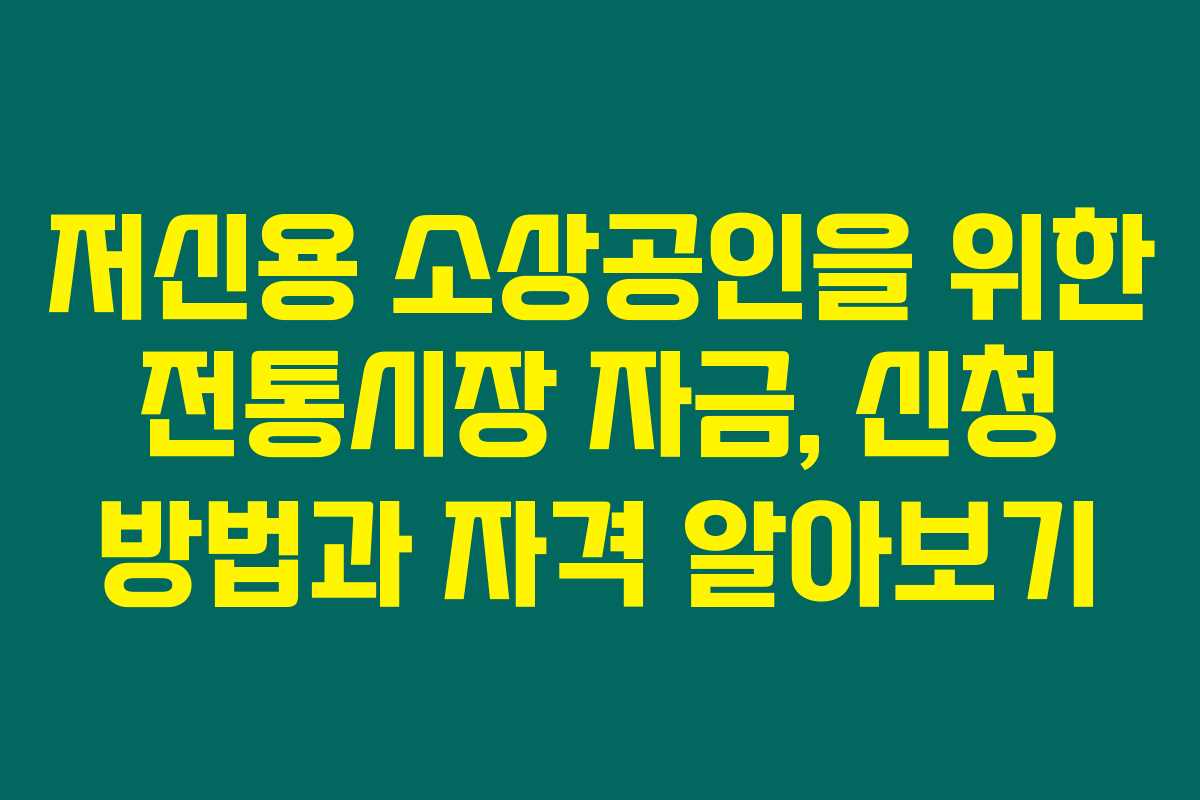 제가 직접 경험해본 결과로는, 소상공인 시장 진흥공단(소진공)에서 제공하는 저신용 소상공인을 위한 전통시장 자금이 많은 소상공인들에게 큰 도움이 되는 프로그램이라는 것을 알게 되었어요. 이 자금 지원은 경영에 어려움을 겪고 있는 저신용 소상공인을 위해 마련된 것으로, 신청 방법과 자격 요건을 아래를 읽어보시면 쉽게 이해하실 수 있을 거예요.