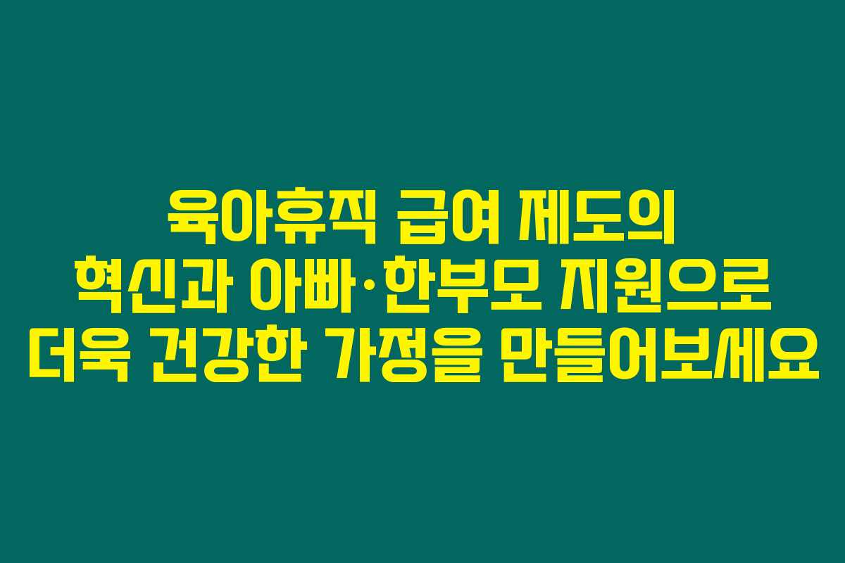 제가 직접 경험해본 바로는, 최근 육아휴직 급여 제도의 변화는 많은 가정에 기쁜 소식을 가져다준 것 같습니다. 아빠육아휴직 보너스와 한부모 및 사업주 지원금이 대폭 개선되어, 많은 가정에서 육아에 대한 부담이 줄어들고 있습니다. 아래를 읽어보시면 육아휴직 제도의 실질적인 혜택에 대해 자세히 안내드리겠습니다.