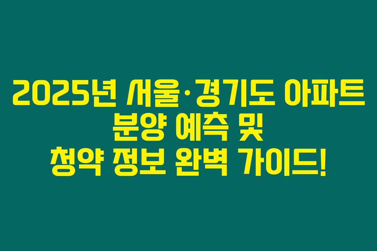 1. 2025년 서울·경기도 아파트 청약은 언제 시작되나요?