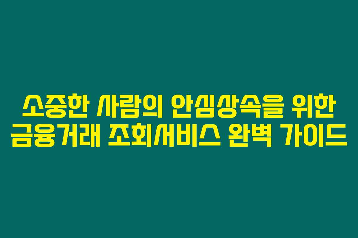 제가 직접 알아본 바로는, 사랑하는 가족을 잃은 후 고인의 금융 자산 및 채무를 확인하는 것이 얼마나 힘든 일인지 잘 알고 있습니다. 하지만 요즘은 상속인 금융거래 조회 서비스 덕분에 피상속인의 재산과 채무를 한눈에 확인할 수 있는 방법이 있습니다. 아래를 읽어보시면 이 서비스가 제공하는 다양한 혜택과 이용 방법에 대해 알아보실 수 있습니다.