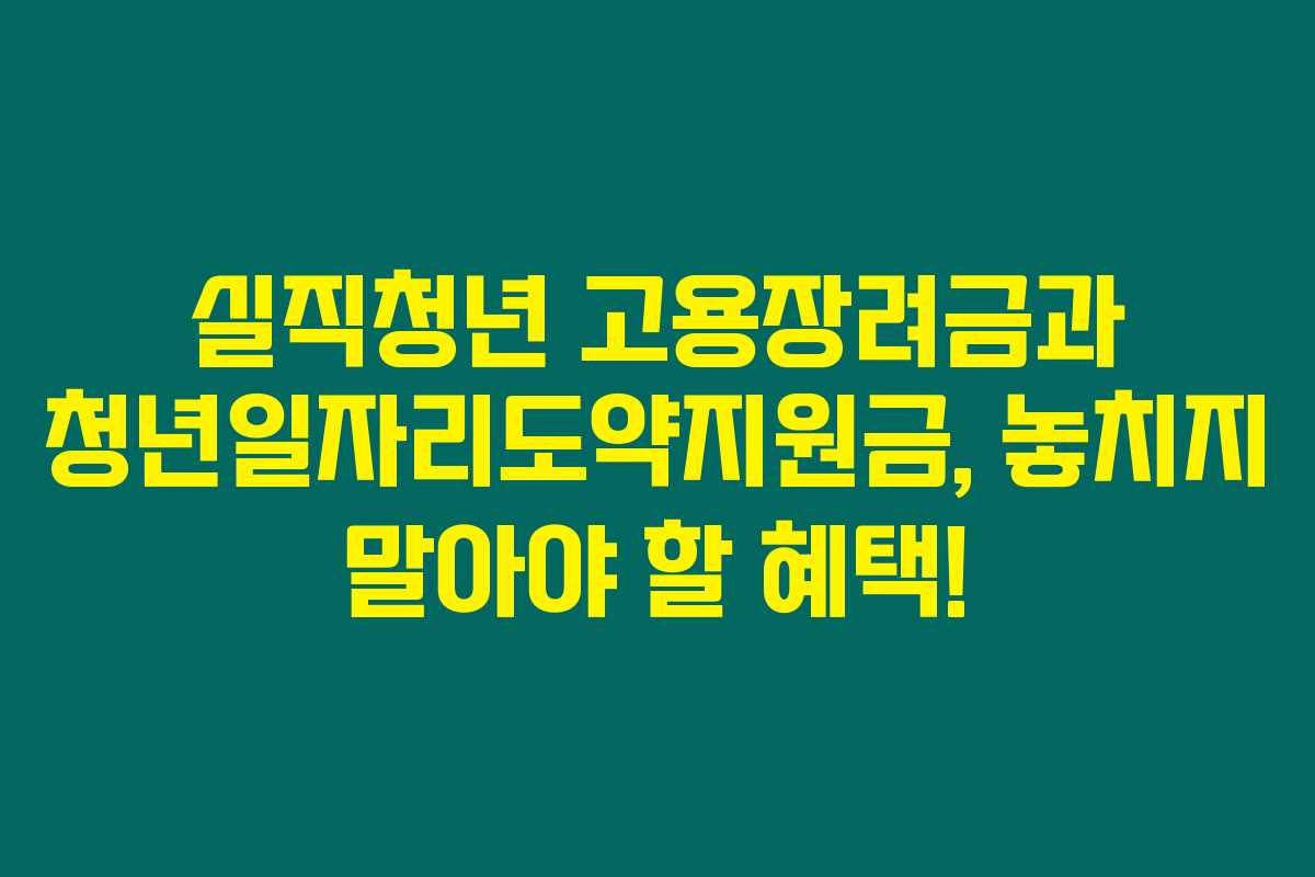 제가 직접 알아본 바로는, 실직 중인 청년을 돕고 또 중소기업의 고용을 장려하기 위해 정부에서 다양한 정책을 시행하고 있답니다. 특히, 실직청년 고용장려금과 청년일자리도약지원금은 대단히 유용한 지원 프로그램이에요. 아래를 읽어보시면 이러한 지원의 대상과 신청 방법에 대해 상세히 알려드릴 테니 놓치지 마세요.