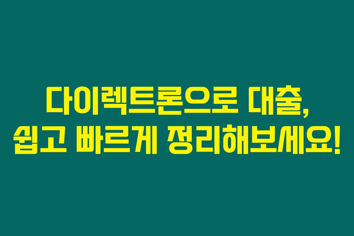 이렇게 다이렉트론을 통해 가능하다면, 보다 쉽게 자금을 마련할 수 있습니다. 필요한 금융 상품을 잘 선택하고 발휘해보세요! 😊