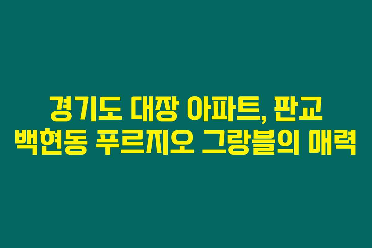 제가 직접 알아본 바로는 판교 백현동 푸르지오 그랑블은 경기도에서 가장 주목받는 아파트 단지 중 하나입니다. 이곳은 뛰어난 교통 접근성과 교육 환경, 그리고 다양한 생활 편의시설이 어우러져 많은 사람들에게 사랑받고 있습니다. 아래를 읽어보시면 푸르지오 그랑블의 다양한 매력과 장점을 알 수 있을 거예요.