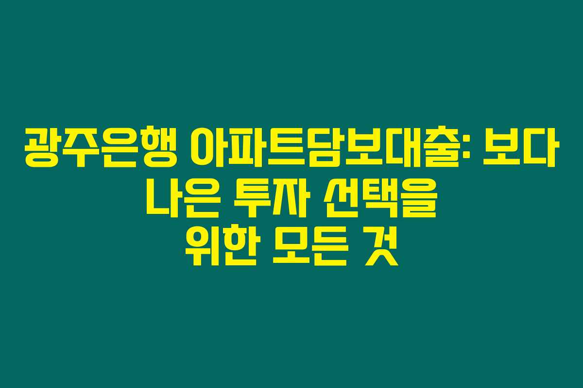결론적으로, 광주은행 아파트담보대출은 주택 소유자에게 매우 유용한 금융 상품이며, 온라인으로 간편하게 신청할 수 있는 장점이 있습니다. 이 글을 통해 필요한 정보들을 빠짐없이 확인하시길 바라며, 광주은행의 다양한 대출 상품을 이용해 보시기 바랍니다. 추가적인 궁금증이 있으시면 언제든지 문의하세요!