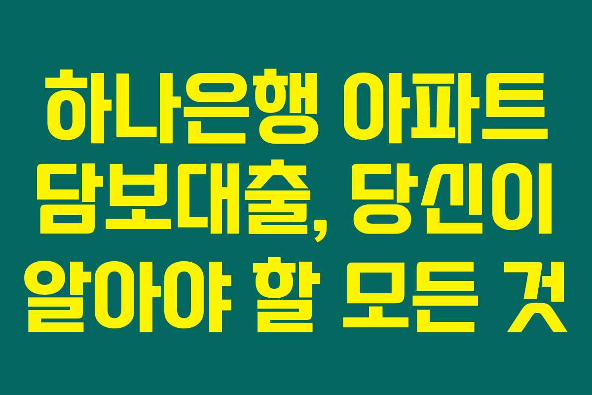 제가 직접 리서치한 바로는, 하나은행의 아파트 담보대출은 주택담보대출 상품 중 아파트만을 대상으로 하는데요. 여러 조건들과 필요한 서류들이 있으니, 이러한 정보를 통해 대출 신청 준비를 더 체계적으로 할 수 있답니다. 아래를 읽어보시면 하나은행 아파트 담보대출의 신청자격, 대출조건, 그리고 필요한 서류에 대한 모든 정보를 얻으실 수 있을 거예요.
