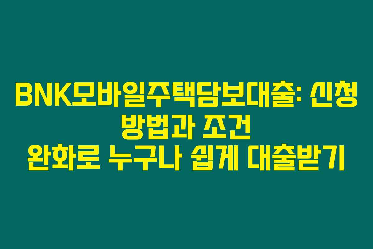 제가 직접 리서치한 바로는, 최근 BNK경남은행이 제공하는 BNK모바일주택담보대출의 신청 조건을 완화한 것이 큰 화제가 되고 있어요. 예전에는 특정 조건을 충족해야만 대출을 받을 수 있었지만, 이제는 더 많은 분들이 쉽게 대출을 받을 수 있게 되었답니다. 아래를 읽어보시면 이 대출 상품의 다양한 정보와 신청 방법에 대해 자세히 알아볼 수 있어요.