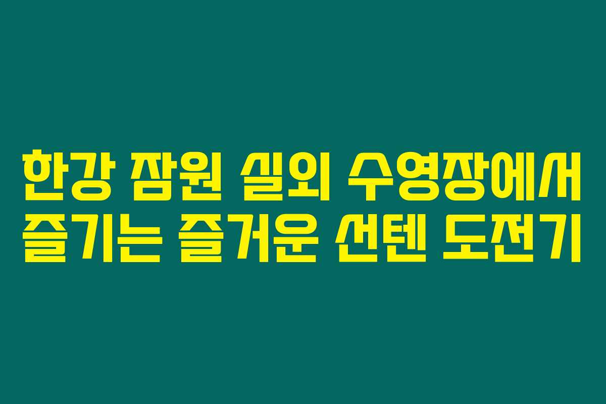 제가 직접 조사해본 결과로는, 서울과 수도권에서 선텐을 하고 싶다면 한강 잠원 실외 수영장이 딱 좋은 장소입니다. 이곳은 편리한 위치와 깨끗한 수영 환경을 자랑하며, 여유로운 물놀이와 선텐을 동시에 즐길 수 있는 최적의 장소랍니다. 아래를 읽어보시면 한강 잠원 실외 수영장이 얼마나 매력적인지 알 수 있을 거예요.