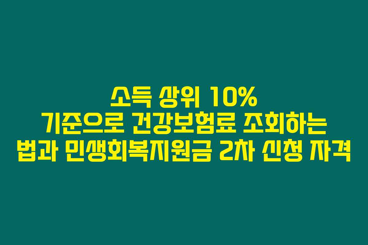 제가 직접 알아본 바로는, 소득 상위 10%에 해당하는 분들이 건강보험료를 기준으로 민생회복지원금 2차 지원의 신청 자격을 결정하는 데 있어 고민이 많습니다. 이 글에서는 소득 상위 10% 기준에 대한 정보와 건강보험료 상위 10%의 금액 조회 방법에 대해 알아볼게요. 아래를 읽어보시면 많은 도움이 될 것입니다.