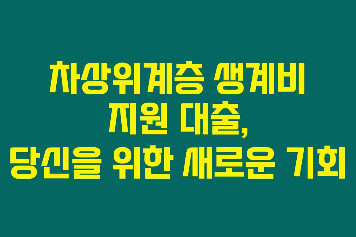차상위계층 생계비 정부지원 대출은 어려운 시기에 중요한 재정적 지원을 제공합니다. 이 시스템을 통해 많은 분들이 위기를 극복하는 데 큰 도움이 되셨으면 좋겠어요. 필요하다면 시기적절하게 지원을 요청하여 경제적 안정을 찾으시길 바랍니다.