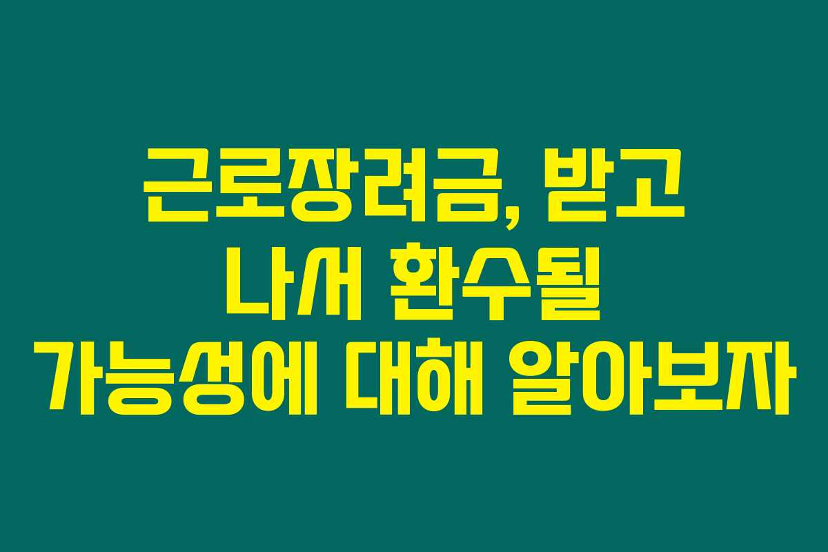 근로장려금은 특정 소득 기준과 재산 기준 아래에서 시행되는 만큼, 신청 당시 소득이나 재산을 잘못 기재했을 경우 환수가 발생할 수 있습니다.