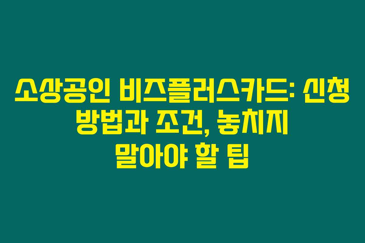 제가 직접 알아본 바로는, 중소기업과 소상공인들에게 가장 큰 문제 중 하나는 자금 운용과 관련한 어려움입니다. 그런 차원에서 정부가 지원하는 소상공인 비즈플러스카드는 매우 유용한 해결책이 될 수 있습니다. 이 카드는 최대 1,000만 원의 신용한도를 무이자와 무보증료로 제공하니, 꼭 확인해보셔야 할 내용이 많습니다. 아래를 읽어보시면 신청 방법과 발급 조건을 총정리한 정보를 확인하실 수 있습니다.