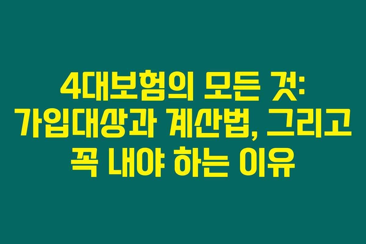 제가 직접 경험해본 결과로는 4대보험은 모든 근로자와 사업주에게 매우 중요한 요소로 자리잡고 있답니다. 4대보험의 종류와 가입대상, 계산방법, 그리고 신청방법에 대해 알아보면 왜 이러한 보험이 필수적인지도 이해할 수 있습니다. 아래를 읽어보시면 4대보험의 필요성과 실질적인 정보에 대해 깊이 알아보실 수 있을 거예요.