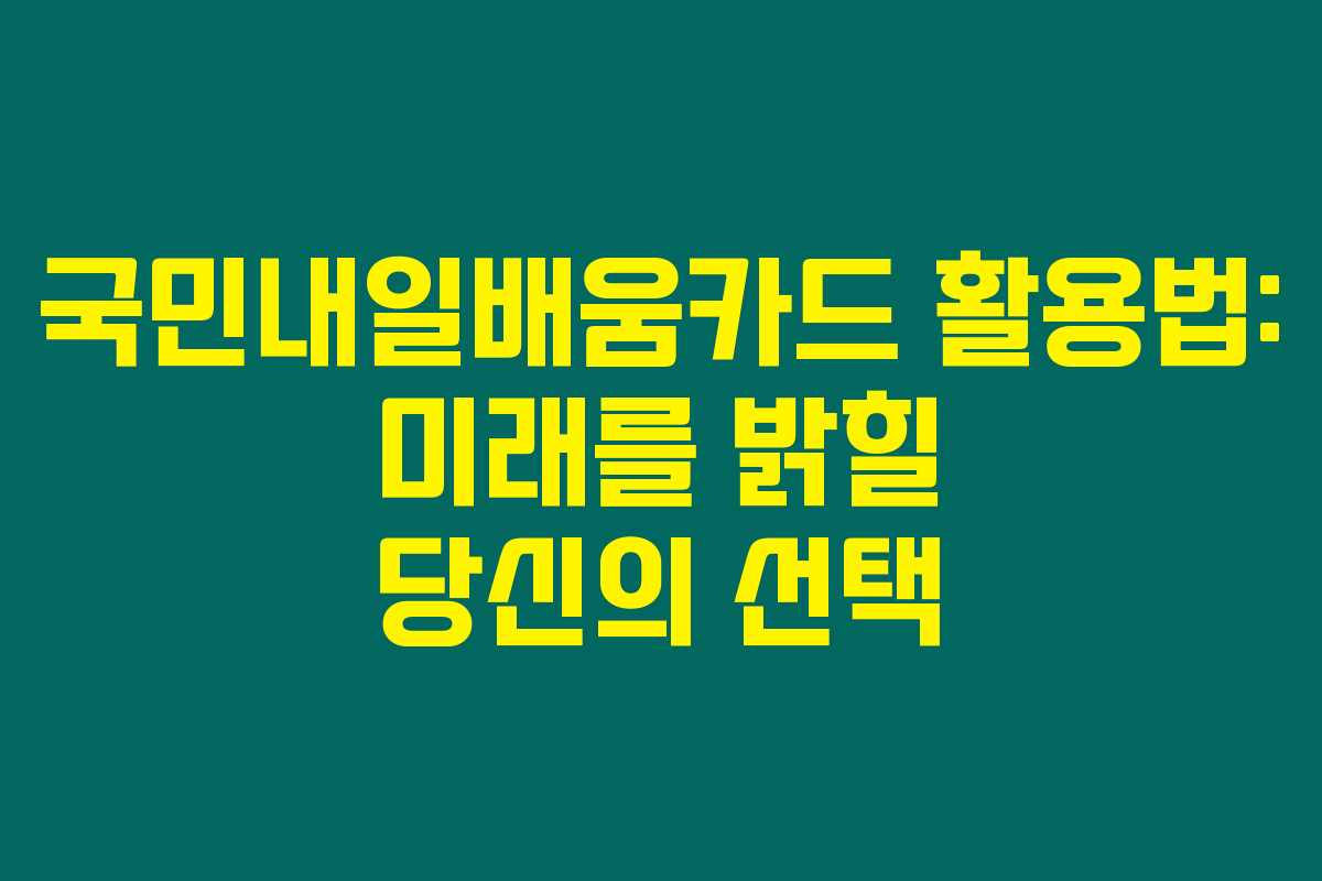 국민내일배움카드는 개인의 능력을 향상시키고 더 나은 일자리를 위한 큰 도움이 됩니다. 그래서 이 카드의 활용도와 그 방법을 잘 이해하여 자신에게 맞는 방법으로 사용하시면 좋겠어요. 더 나은 미래를 위해 이제 국민내일배움카드를 적극 활용해보세요!