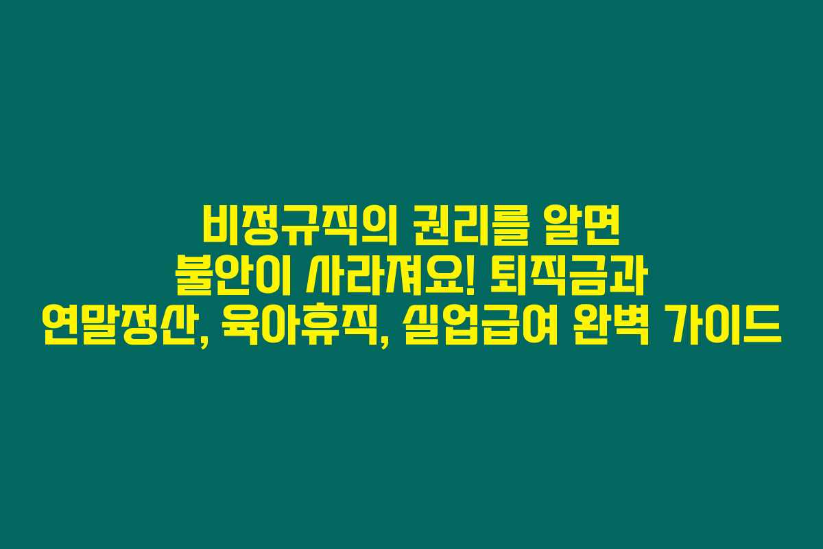 비정규직 근로자들도 자신이 누릴 수 있는 권리를 잘 알고 준비하는 것이 중요해요. 퇴직금, 연말정산, 육아휴직 및 실업급여 등을 잘 활용하신다면 보다 나은 직장 생활을 할 수 있을 거라 생각해요.