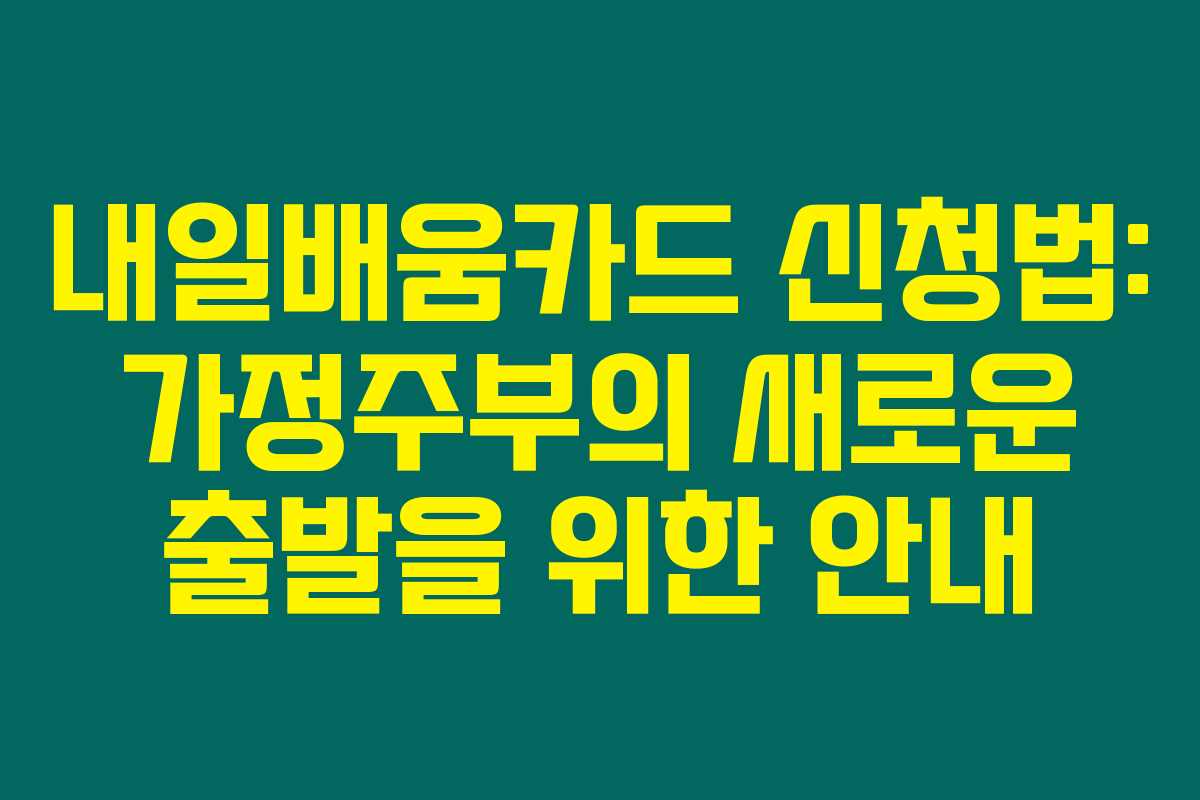 가정주부를 위한 내일배움카드 신청 방법에 대해 상세히 안내드립니다. 가정주부 여러분들이 이 카드를 활용해 자기계발 및 경제적 자립을 이룰 수 있는 기회를 잡을 수 있도록 제가 직접 확인해본 결과, 이 과정은 간단하면서도 유용하다는 것을 알게 되었습니다. 더 이상 망설이지 마시고, 내일배움카드로 새로운 미래를 준비해보세요.