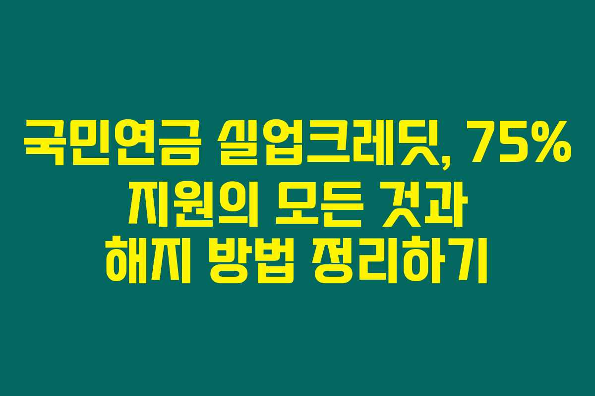 제가 직접 경험해본 결과로는, 국민연금의 실업크레딧 제도는 실직 상태에서 경제적 부담을 덜어주는 유용한 지원책이었습니다. 75% 정부 지원을 통해 보험료를 절감할 수 있는 방법에 대해 궁금하신 분들을 위해 세부 내용을 정리해 보았습니다. 아래를 읽어보시면 실업크레딧 지원 방법과 해지 절차에 대한 모든 정보를 확인하실 수 있을 거예요.