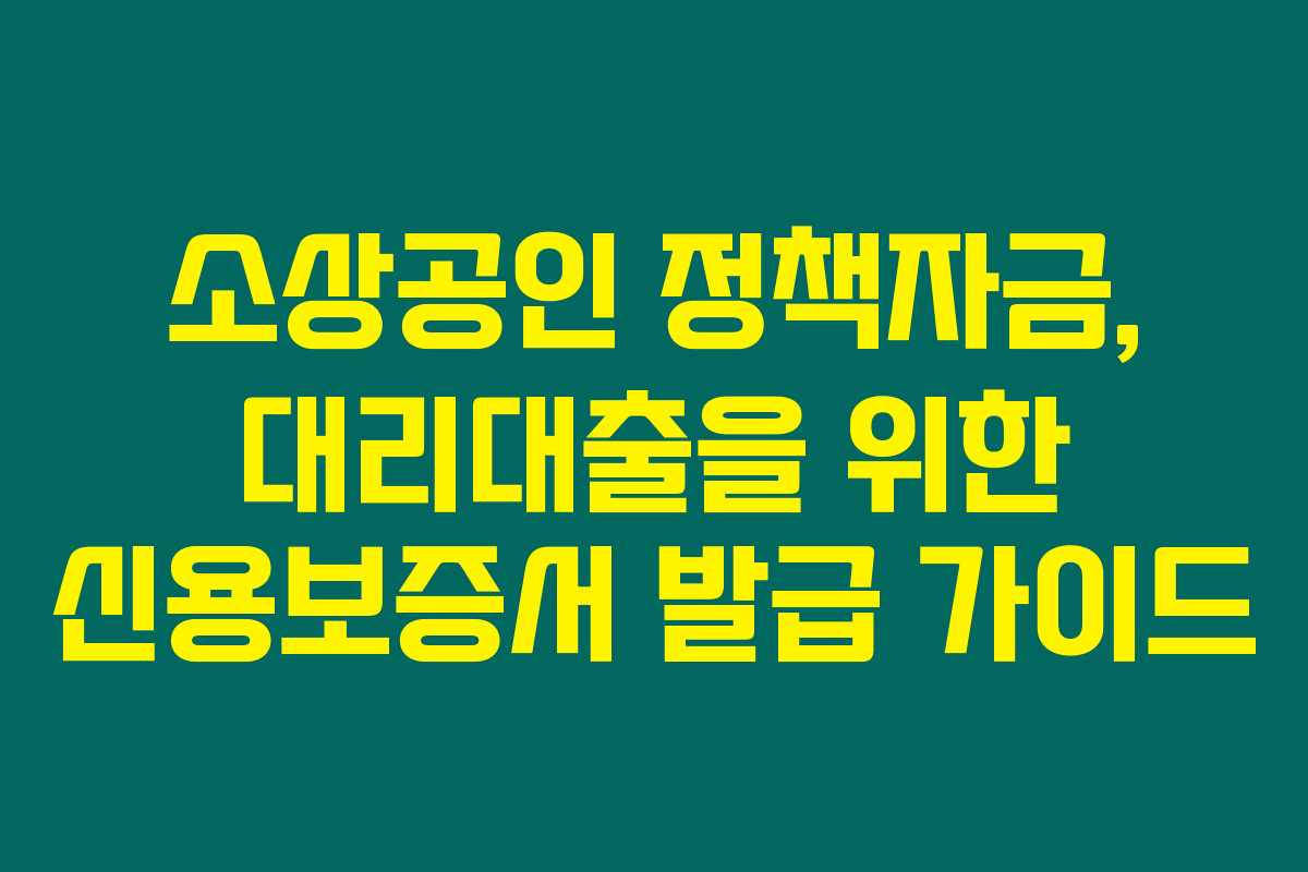 제가 직접 경험해본 결과로는, 소상공인들이 효율적으로 정책자금을 활용하기 위해서는 대리대출과 신용보증서 발급이 매우 중요하답니다. 이를 통해 소상공인의 성장과 안정적인 운영이 가능하죠. 아래를 읽어보시면 신용보증서 발급 과정을 어떻게 진행해야 하는지에 대해 자세히 안내해드릴게요.