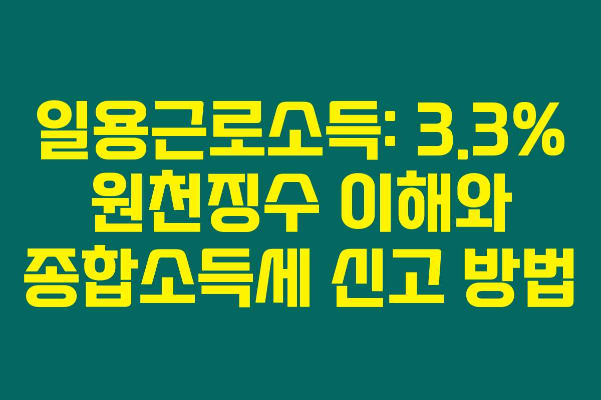 제가 직접 경험해본 바로는 일용근로소득과 관련된 3.3%의 원천징수 및 종합소득세 신고, 환급 방법에 대해 알아보면서 많은 사람들이 알고 싶어하는 정보를 정리해 보았습니다. 이 글에서는 일용근로소득의 개념, 원천징수 규정, 신고 절차 및 환급 가능성에 대해 심도 있게 설명드리겠습니다.