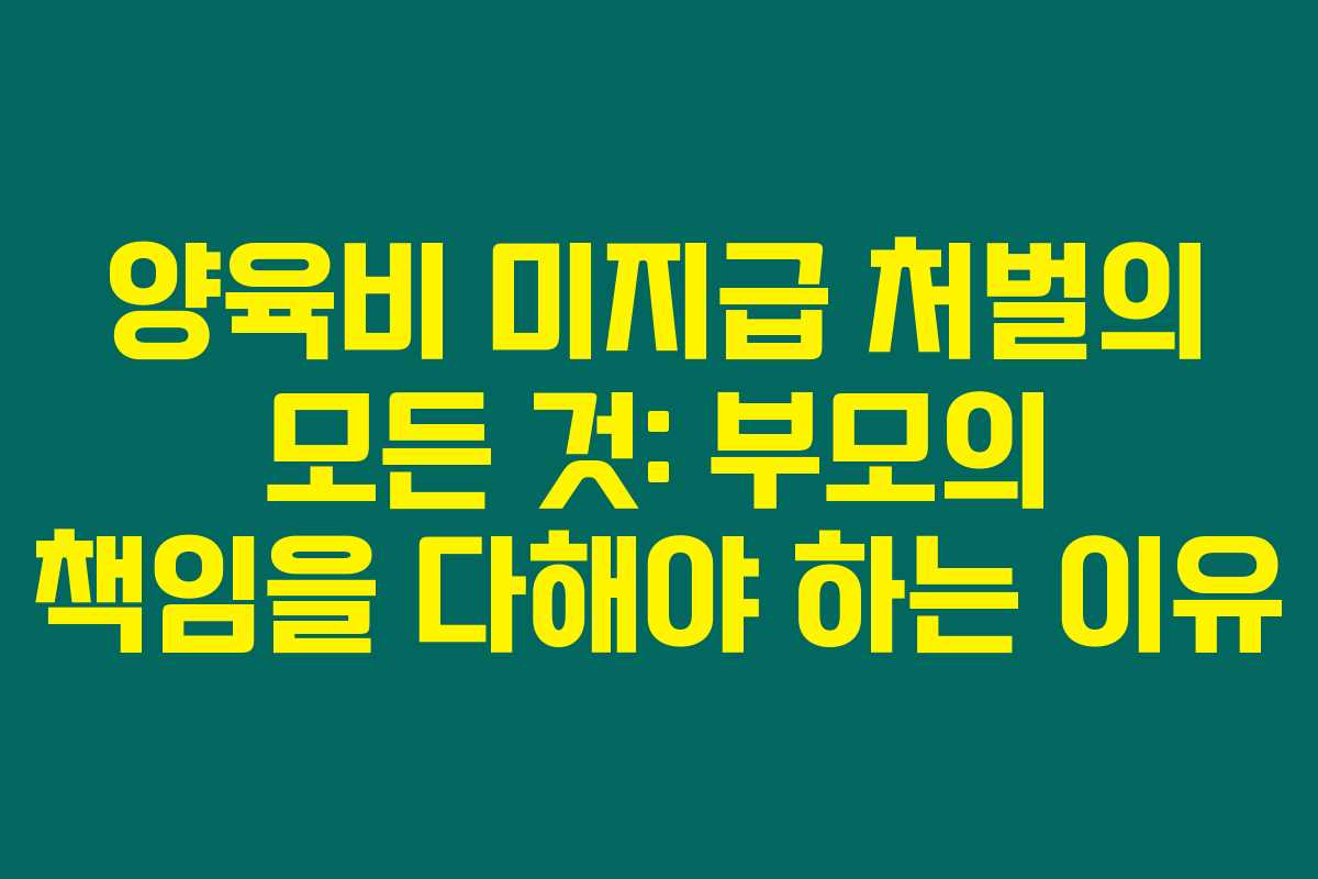 제가 직접 경험해본 결과로는, 많은 부모님들이 양육비 미지급 문제로 고민하고 있다는 것을 알게 되었습니다. 양육비는 자녀의 삶에 필수적이며 부모의 책임이기도 합니다. 아래를 읽어보시면, 양육비 미지급에 대한 다양한 처벌 종류와 그로 인한 결과를 충분히 이해하실 수 있을 것입니다.