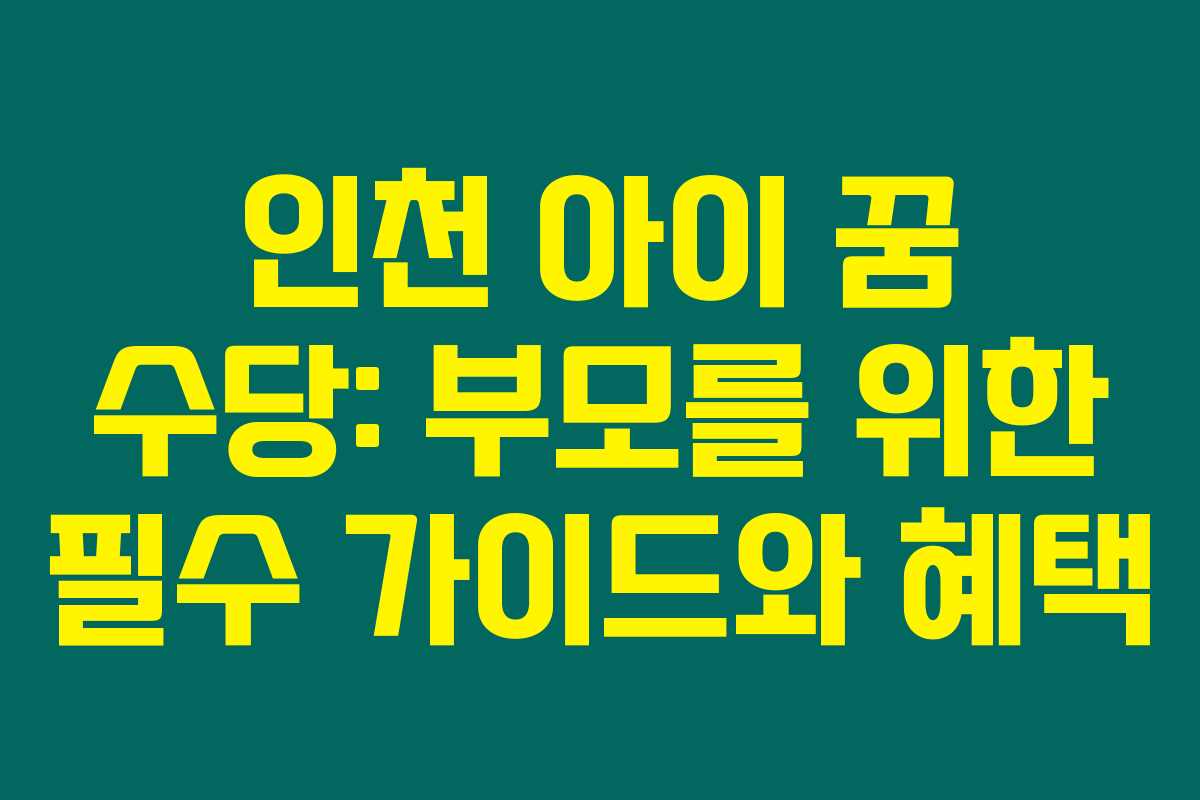 제가 직접 알아본 바로는 인천에서 제공하는 아이 꿈 수당은 자녀를 둔 부모들에게 매우 유용한 지원 제도입니다. 이 제도를 통해 아이들의 복지와 건강한 성장을 지원하고, 경제적 부담을 덜 수 있도록 하고 있습니다. 아래를 읽어보시면 아이 꿈 수당의 주요 내용과 신청 방법을 포함한 필수 정보를 알기 쉽게 정리했습니다.