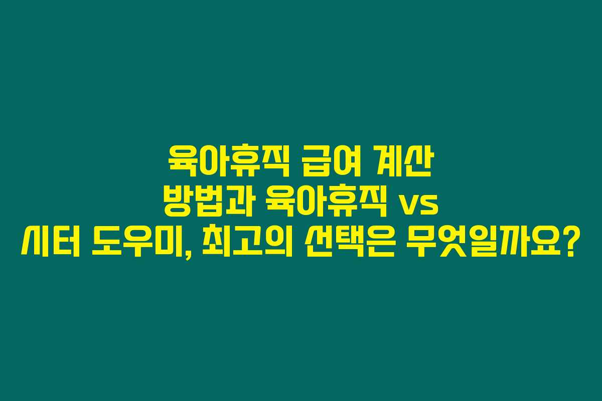 제가 판단하기로는, 육아휴직 급여와 시터 도우미에 대해 자세히 알아본 결과, 부모님들께서 각자의 상황에 맞는 현명한 선택을 할 수 있도록 정보를 제공하고자 합니다. 아래를 읽어보시면 육아휴직 급여의 계산법과 시터 도우미의 비용 비교, 그리고 두 옵션의 장단점에 대한 도움이 주어질 것입니다.
