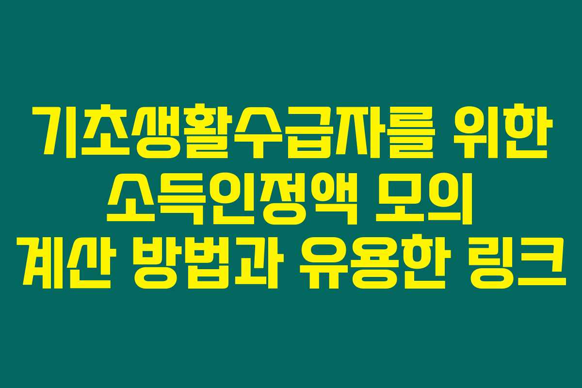 제가 직접 검색해본 결과, 기초생활수급자의 자격을 확인하기 위해 꼭 필요한 소득인정액 계산법과 주거급여 중위소득 모의계산기를 소개해 드리려고 해요. 이 정보는 모든 분들에게 유용할 것이니, 아래를 읽어보시면 많은 도움이 될 거예요.
