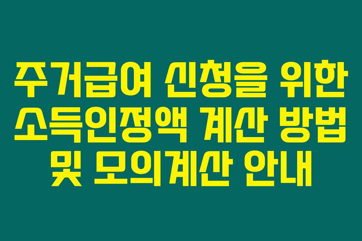 주거급여 신청에 필요한 소득인정액 계산과 그 과정을 모의계산하는 방법을 소개합니다. 제가 직접 확인해본 바로는, 주거급여는 주거 안정과 생활 향상을 위해 저소득 가구에게 제공되는 매우 중요한 혜택이에요. 많은 분들이 이 정보를 통해 더 나은 주거 환경을 마련할 수 있기를 바랍니다.