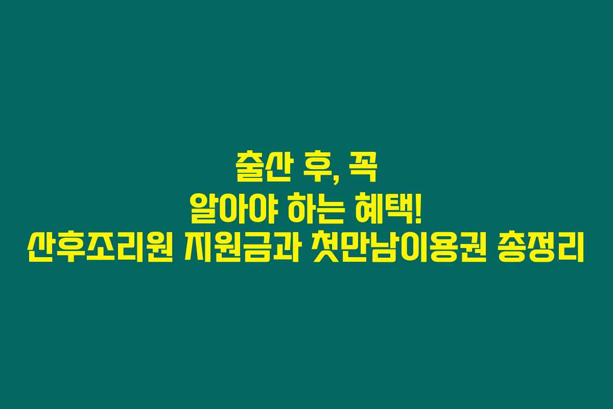 디스크립션: 제가 직접 경험해본 결과, 출산 후 누릴 수 있는 다양한 혜택 중 특히 산후조리원 지원금과 첫만남이용권 제도가 중요했어요. 이 글에서는 이 두 가지 제도에 대해 상세히 알아보겠습니다.