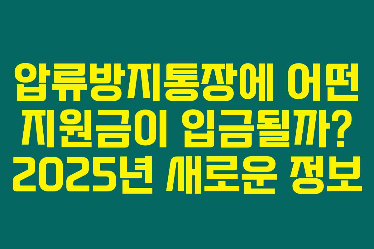 2025년 기준으로 압류방지통장에 입금되는 다양한 지원금이 새롭게 정리되었습니다. 이러한 지원금의 종류를 알고 있으면, 자신의 권리를 명확히 알고 활용할 수 있습니다.