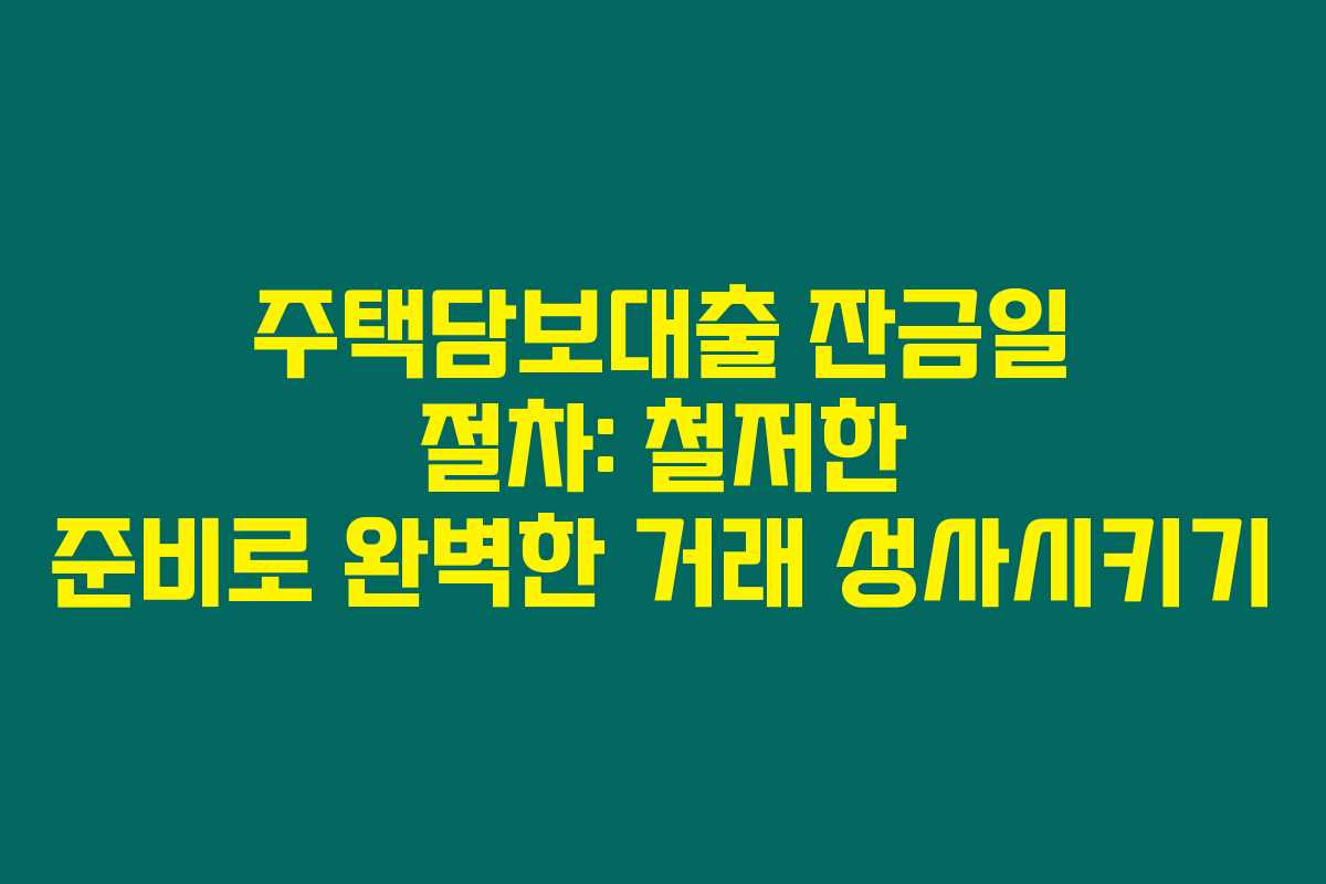 주택담보대출 잔금일 절차와 법무사의 중요성을 잘 이해하고 준비하셔서 안전하고 원활한 거래를 이루시길 바랍니다.