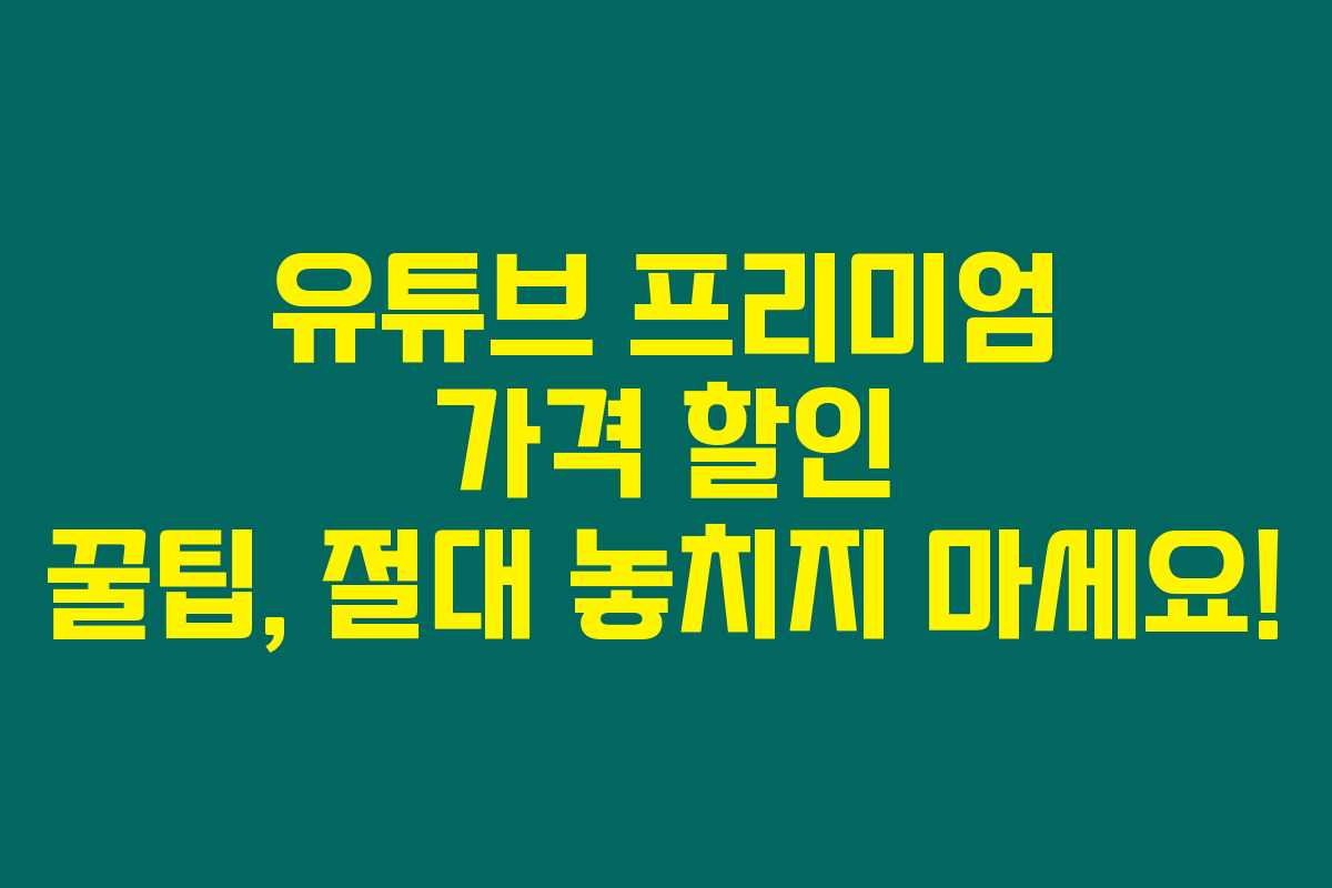 유튜브 프리미엄은 광고 없이 유튜브 영상을 즐길 수 있는 멋진 서비스예요. 하지만 요금이 부담스럽게 느껴질 수도 있죠. 아래를 읽어보시면, 유튜브 프리미엄을 저렴하게 이용할 수 있는 방법, 특히 학생 할인과 가족 할인에 대해 집중적으로 안내해 드릴게요.