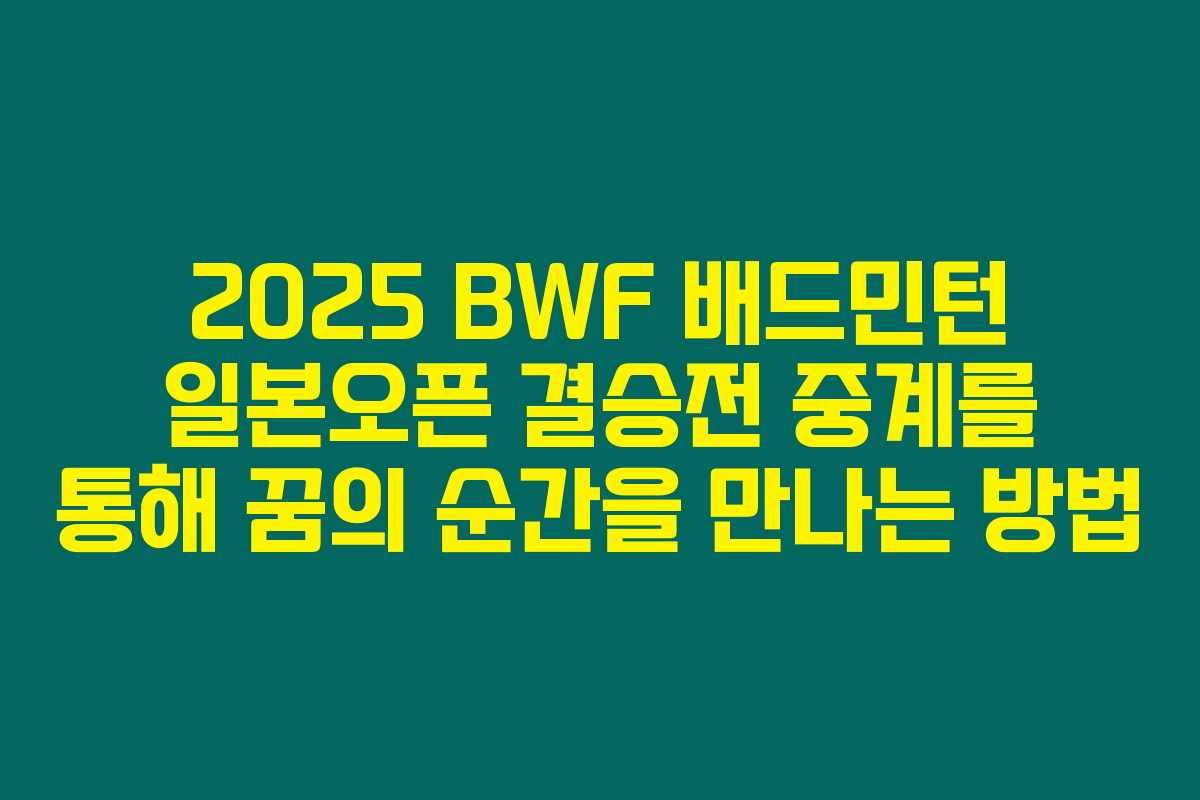 2025 BWF 배드민턴 일본오픈 결승전은 전 세계 배드민턴 애호가들에게 뜨거운 열기를 선사할 큰 이벤트입니다. 많은 팬들이 이 결승전을 통해 선수들의 뛰어난 기량을 감상하며, 경기의 긴장감과 흥분을 만끽할 수 있지요. 아래를 읽어보시면 이번 대회와 결승전 중계에 대한 모든 궁금증을 해결할 수 있습니다.