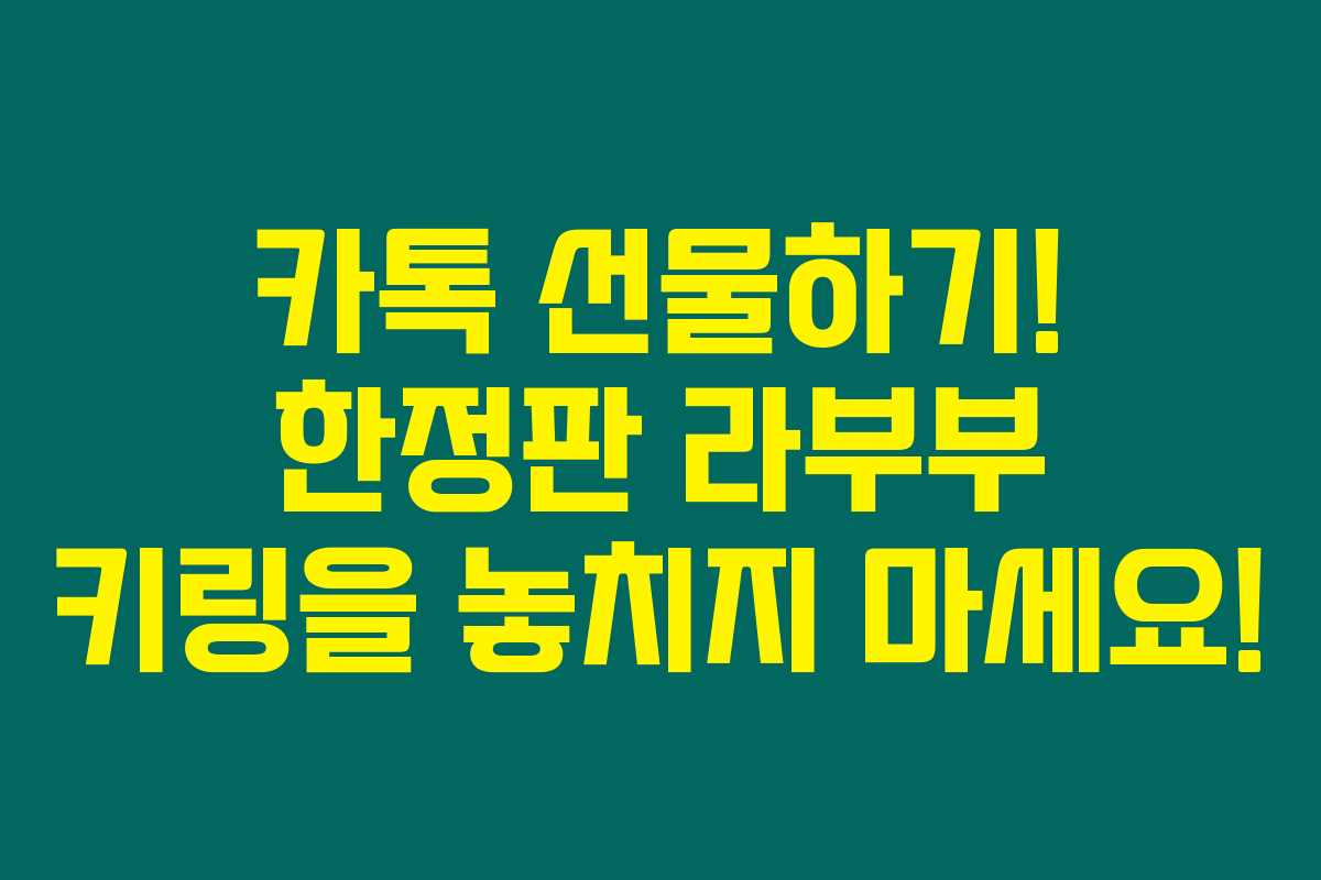 7월 9일 오전 10시, 카카오톡 선물하기로 라부부 키링의 한정판이 출시됩니다. 귀여움 넘치는 디자인과 특별한 감정을 표현한 이번 시리즈는 정말로 소장하고 싶은 아이템이에요. 아래를 읽어보시면 라부부 키링의 특별함과 구매 팁을 통해 당신도 득템할 수 있는 기회를 잡으실 수 있을 거랍니다!
