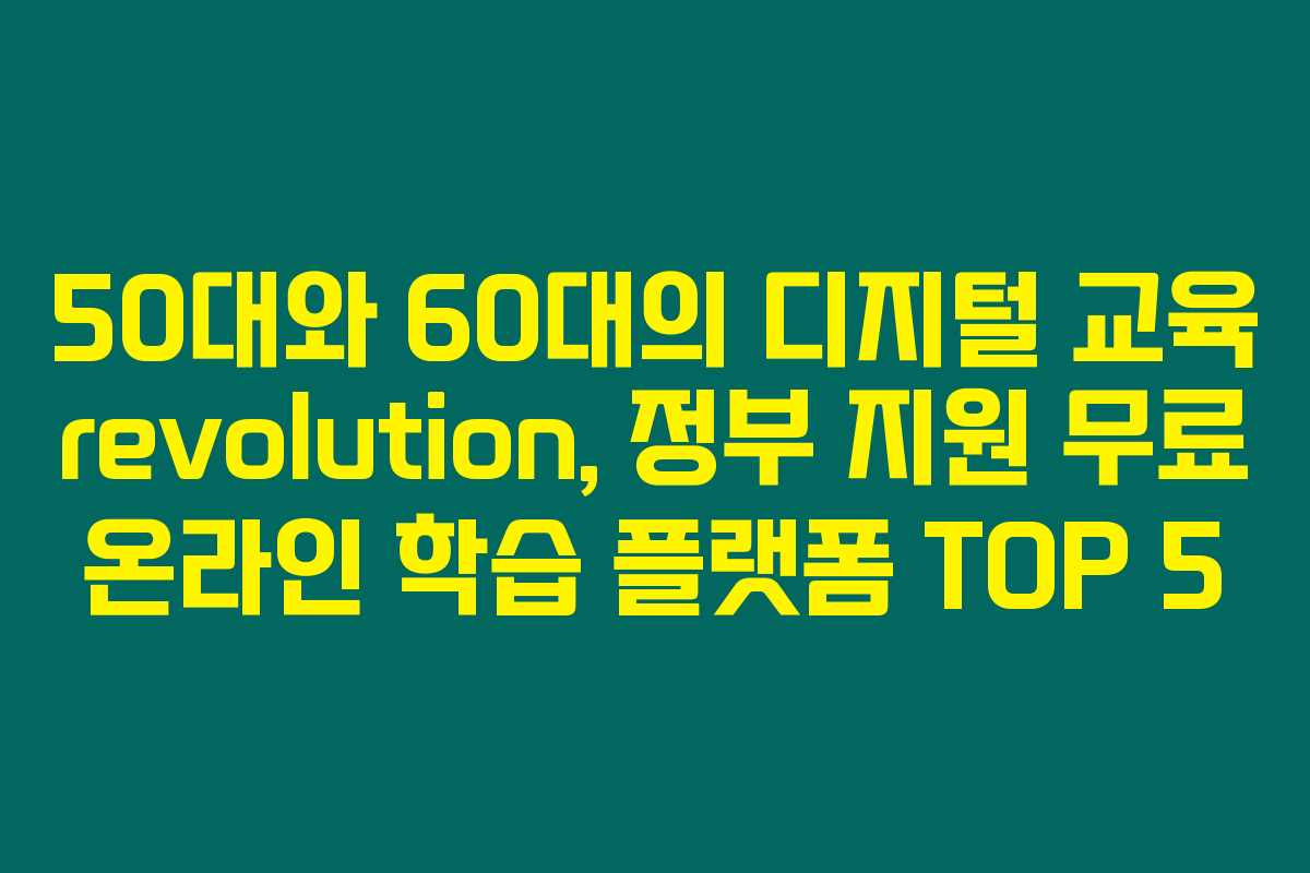 2025년의 새로운 시대에는 중장년층도 편하게 온라인 학습을 통해 폭넓은 지식을 배울 수 있게 되었어요. 많은 50대, 60대 분들이 새로운 자격증, 기술, 취미 등을 배우고 싶어 하지만, 여전히 시간이나 비용 문제로 고민하고 있는 여러분에게 희소식입니다. 아래를 읽어보시면, 집에서 무료로 수업에 참여할 수 있는 정부 지원 온라인 교육 플랫폼 TOP 5를 소개할게요!