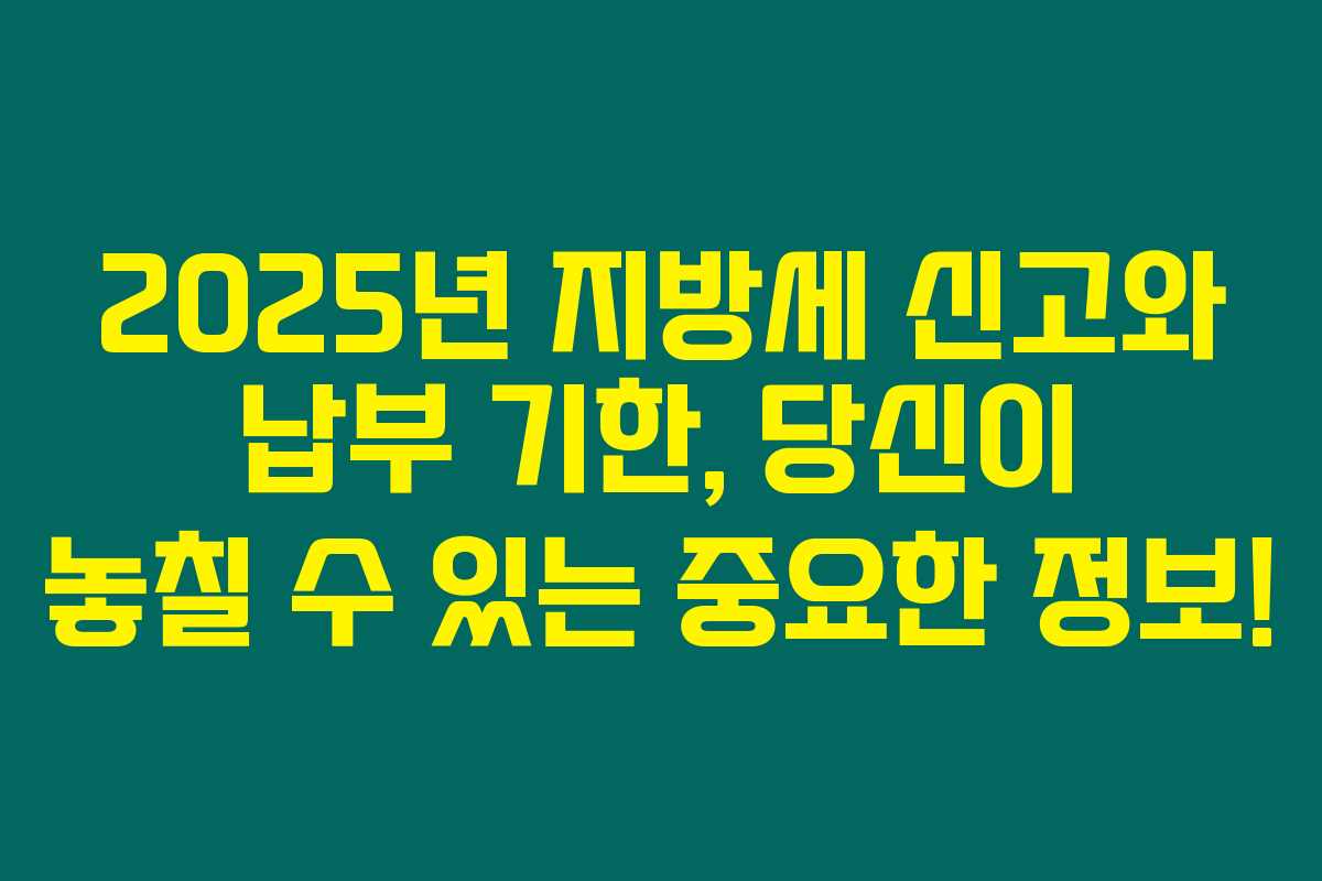 2025년 지방세 신고 및 납부 시기를 알고 계신가요? 만약 납부 기한을 놓치면 가산세가 붙어서 내년 세금이 더 많이 나올 수 있어요. 그래서 아래의 중요한 지방세 신고 및 납부 시기를 미리 확인해보세요. 놓치면 안 될 정보가 가득하답니다.