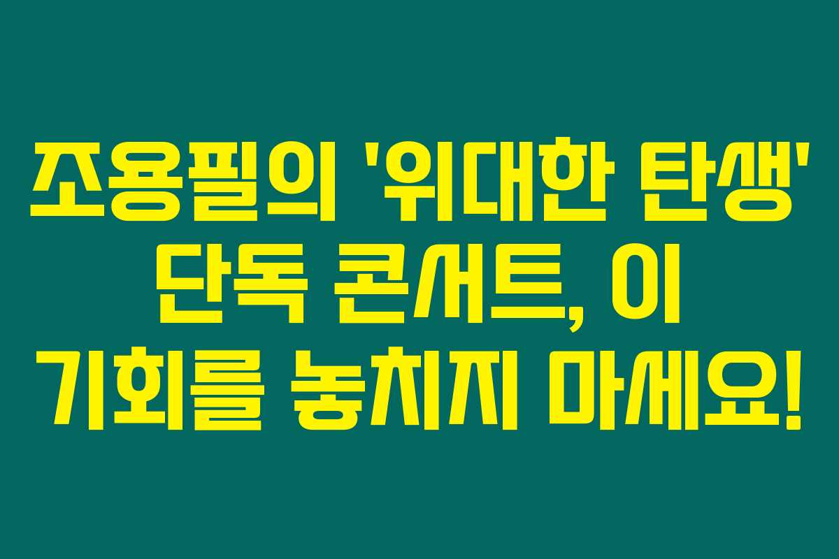 조용필의 ‘위대한 탄생’ 콘서트는 단순한 이벤트가 아니라, 우리가 함께 할 추억과 감동의 순간을 만들어줄 기회랍니다. 소중한 그 시간을 놓치지 마세요.