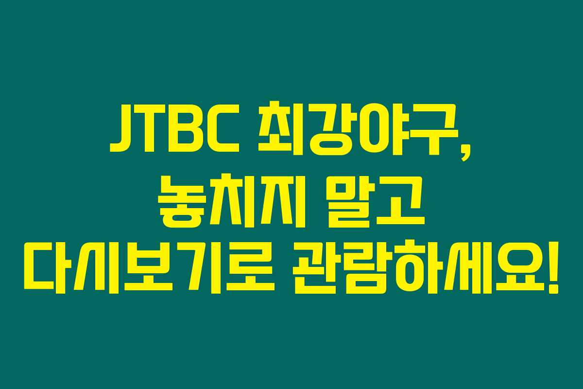 JTBC 최강야구는 매주 치열한 경쟁과 재미있는 이야기를 담고 있으며, 전 국민적인 인기를 끌고 있습니다. 아래를 읽어보시면 최강야구 재방송 다시보기 방법과 활용 팁을 알게 될 거예요!