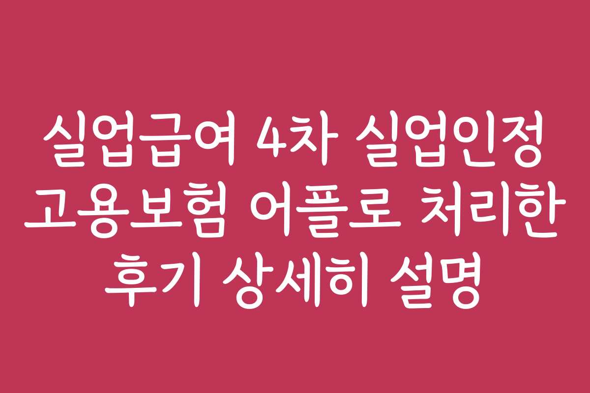 실업급여 4차 실업인정 활용법 및 실전 팁