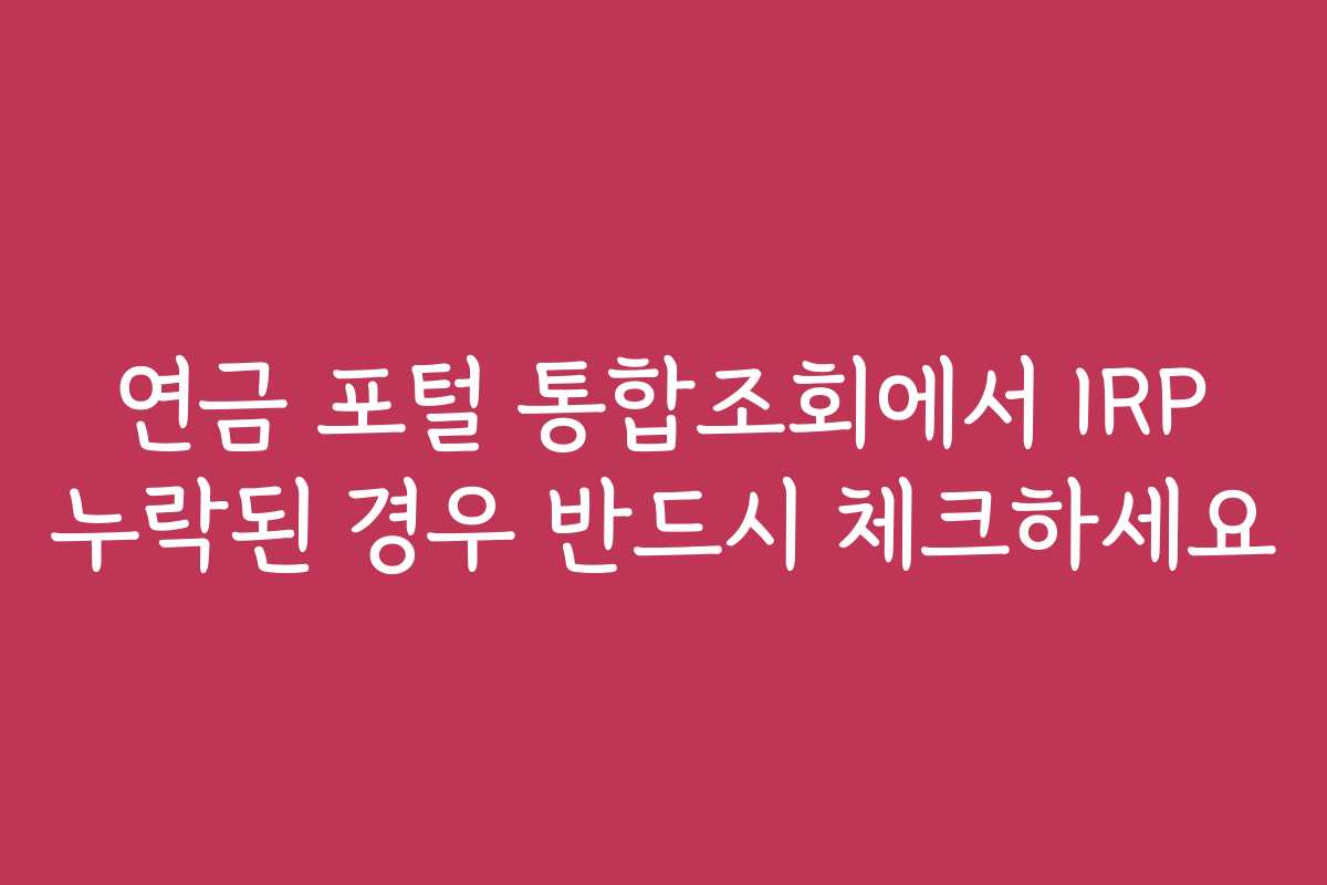 연금 포털 통합조회에서 IRP 누락의 정의 및 중요성
