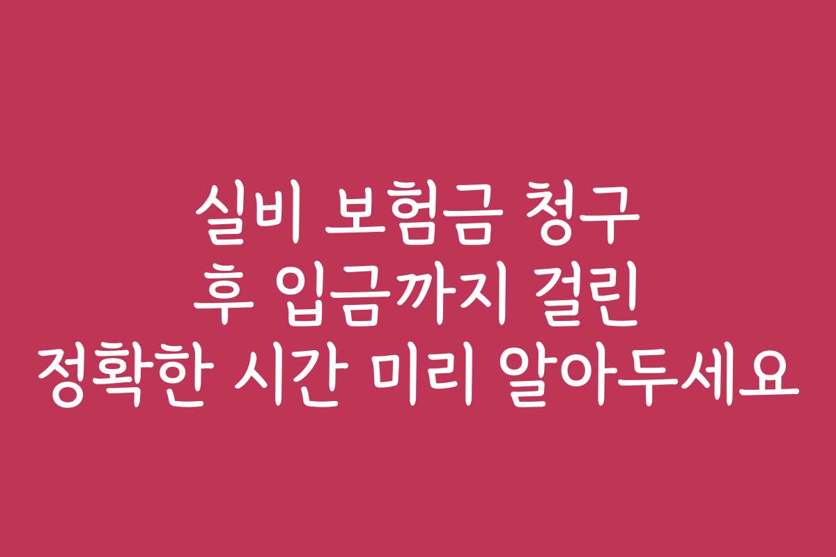 실비 보험금 청구 후 입금까지 걸린 정확한 시간은 얼마나 될까요? 많은 사람들이 이를 몰라 불안해합니다. 이번 글을 통해 실비 보험금 청구 프로세스를 이해하고, 예측 가능한 입금 시간을 확인해보세요.