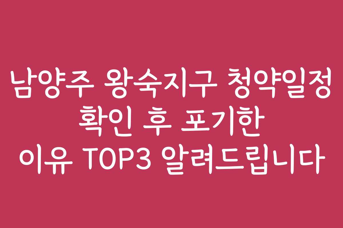 남양주 왕숙지구 청약일정 확인 후 포기한 이유 TOP3 알려드립니다
