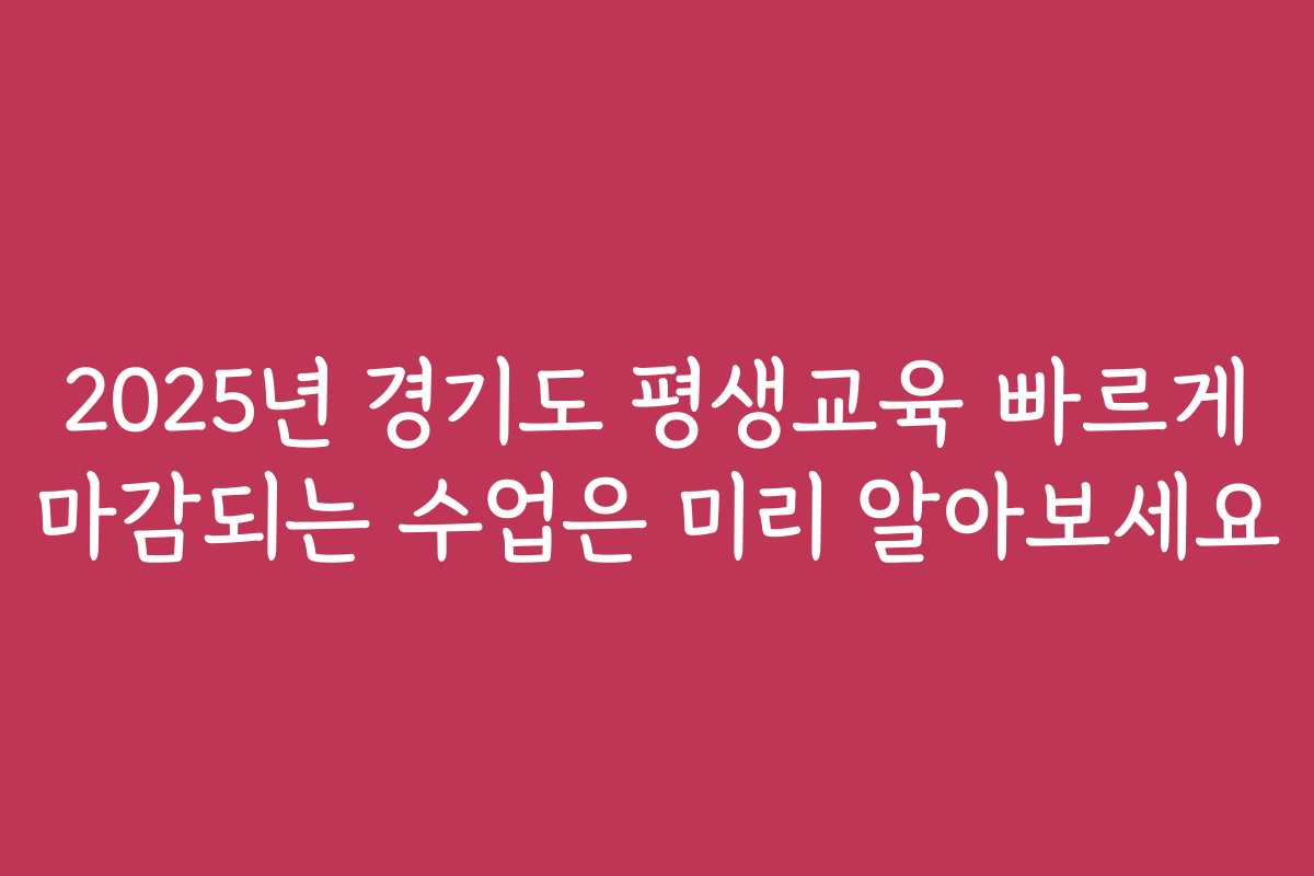 2025년 평생교육에 관심이 많으신가요? 경기도의 다양한 평생교육 프로그램들이 빠르게 마감되고 있습니다. 이 글에서 “2025년 경기도 평생교육 빠르게 마감되는 수업은 미리 알아보세요”를 주제로, 미리 알아보아야 할 교육 프로그램들과 계획에 대해 소개하겠습니다.