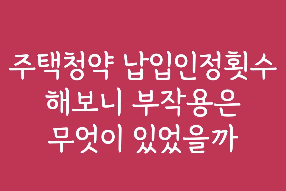 주택청약 납입인정횟수를 해보니, 어떤 부작용이 있었을까?