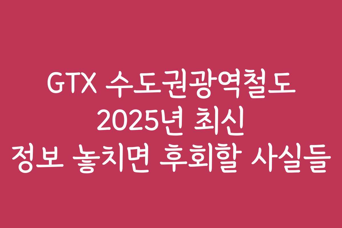 GTX 수도권광역철도 2025년 최신 정보, 놓쳐서는 안 될 사실들!