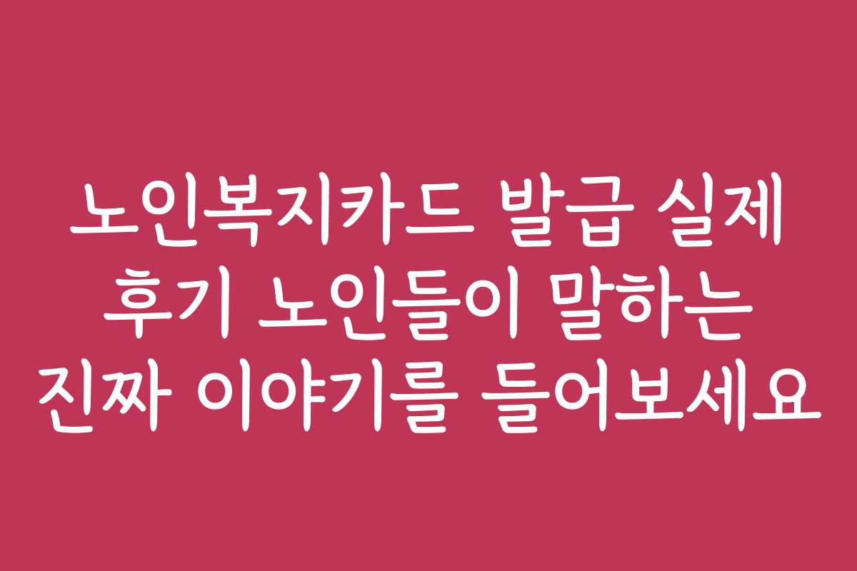 노인복지카드 발급, 실제 후기와 노인들이 전하는 진짜 이야기