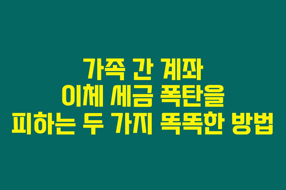 가족 간 계좌 이체를 하면서 발생할 수 있는 세금 문제를 기억하고, 위의 두 가지 방법을 잘 활용한다면 괜찮을 것 같아요. 세금 폭탄을 피하면서 똑똑한 재정 관리를 해보시길 바랍니다!