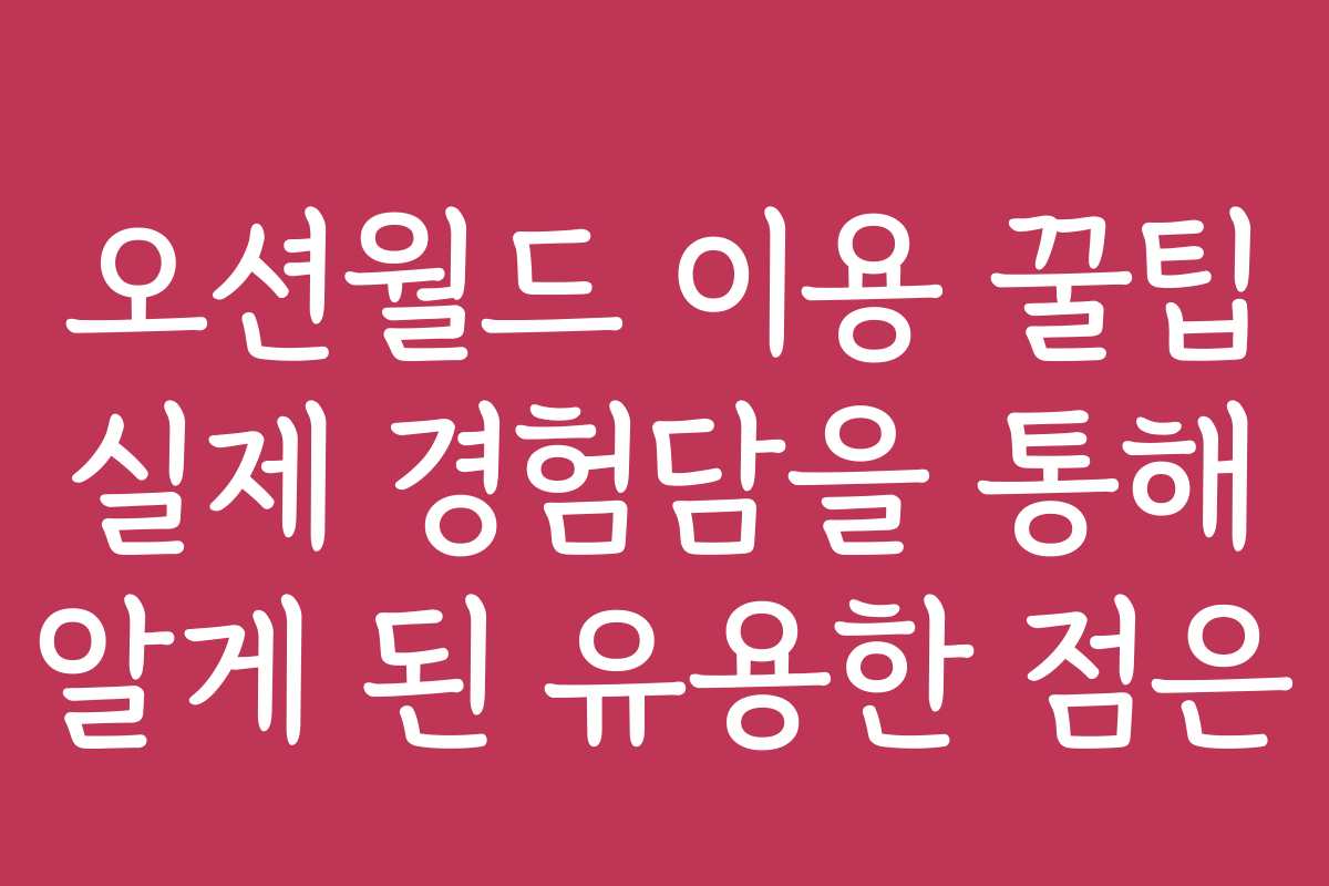 오션월드를 더 잘 이용하는 꿀팁, 실제 경험담을 통해 알게 된 유용한 점은?
