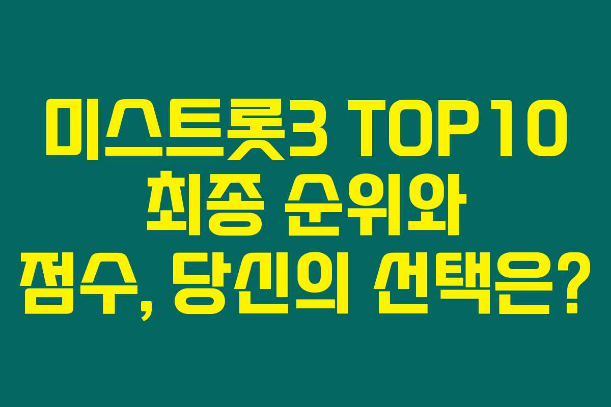미스트롯3 TOP10 선발전, 누가 우승을 차지할지 궁금하신가요? 아래를 읽어보시면 최종 순위 및 점수를 포함한 모든 정보가 담겨 있습니다!
