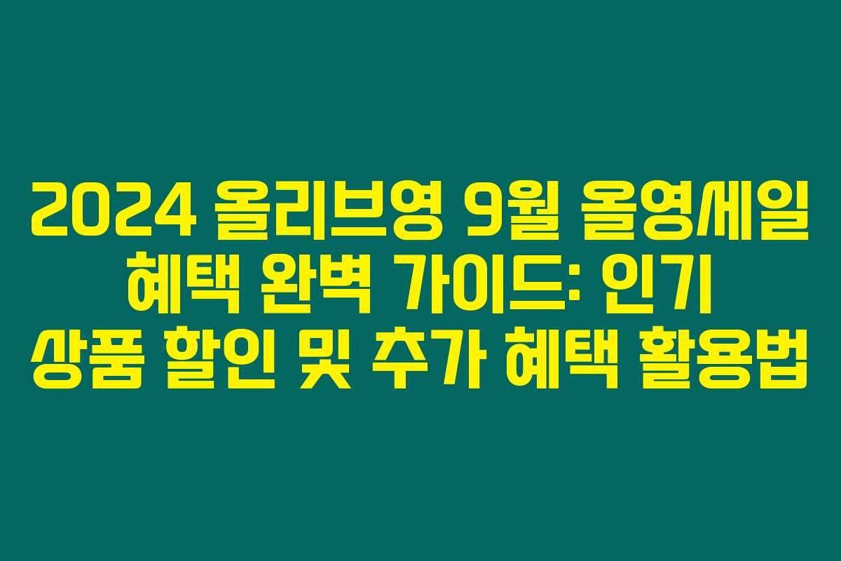 오랜 시간을 기다린 올리브영의 2024년 9월 올영세일이 드디어 시작됩니다! 이번 세일에서는 인기 상품들을 저렴하게 구매할 수 있는 기회가 제공되므로, 작은 알뜰 쇼핑 꿀팁을 잘 활용하면 더욱 큰 혜택이 따라올 거예요. 이번 글에서는 올영세일의 정확한 정보와 할인 상품, 멤버십 혜택 등 알짜 정보를 담아봤어요. 아래를 읽어보시면 쇼핑 할 때 놓치지 말아야 할 정보를 모두 확인할 수 있어요.