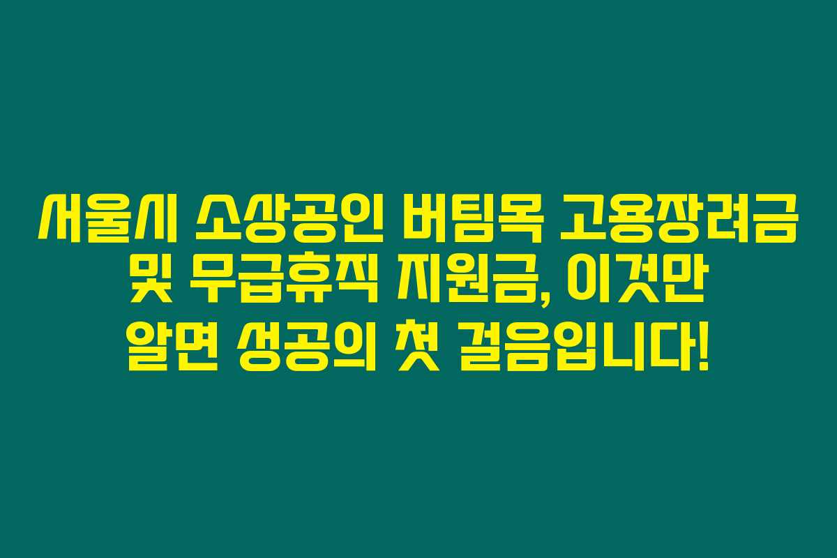 서울시는 소상공인의 인건비 부담을 덜기 위해 총 107억 원을 투입해 버팀목 고용장려금과 무급휴직 지원금 사업을 추진하고 있어요. 만약 여러분이 서울의 소상공인이라면 이 소식을 반드시 체크해야 해요. 특히 경기침체 속에서 직면하는 어려움을 극복하기 위한 귀중한 기회랍니다. 아래를 읽어보시면 이 지원금의 자세한 내용과 신청 방법을 알게 될 거예요!